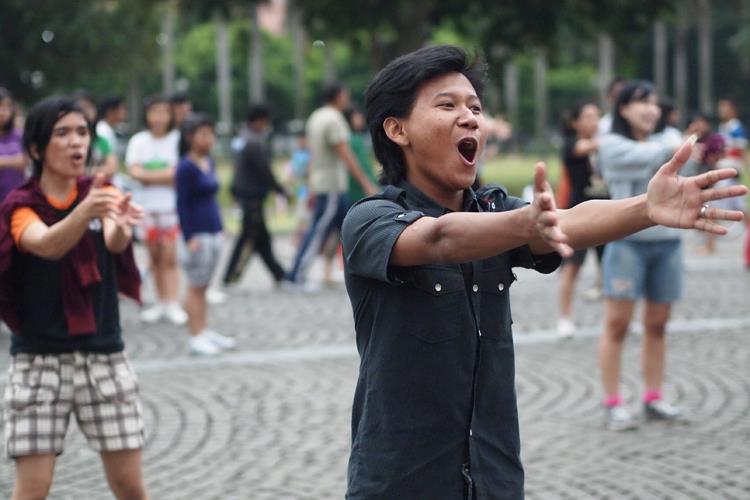 Songs with inspiring lyrics were being a very fitting interludes between each session in the series of Indonesian Joyful Laughing Club’s therapy. Many techniques from Indonesian Joyful Laughing Club are beneficial for our holistic, not only serves for the physical health but also mental, emotional and all human’s layers. The purpose of Indonesian Joyful Laughing Club conducting this two weekly event in National Monument is to spread joy and share holistic health which is very useful for the community.