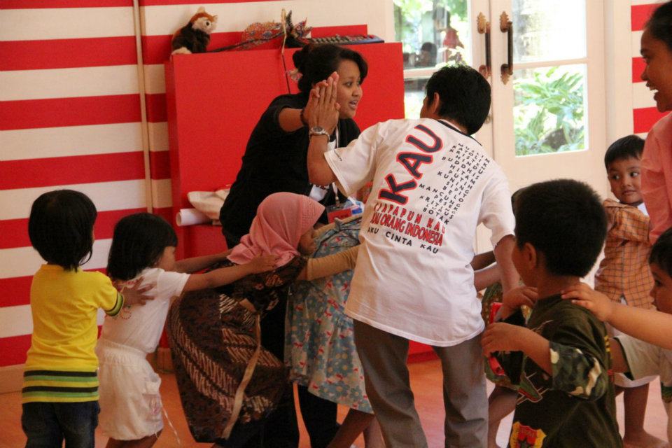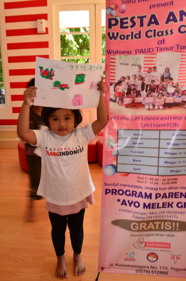 Yogyakarta – Sunday, February 5, 2012, at 14:00 pm the Nutrition Education team held Children Feast World Class Citizen and Parenting Program Let’s Be Literate in Nutrition at east PAUD venue in Taman Pintar. Although it was different from the usual schedule at 09.30, it did not reduce children’s enthusiasm to participate in the event. Some kids who have already joined this even previously, came to the site before our team arrived.