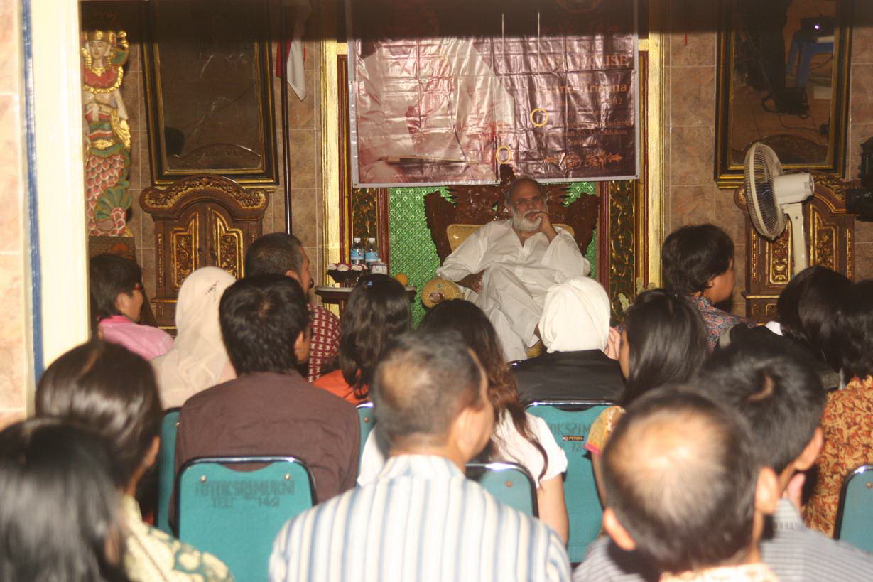 After several rounds of study circle discussing books written by Mr. Anand Krishna, Anand Krishna Information Center (AKIC) Solo in collaboration with Anand Krishna Center (AKC) Joglosemar had an opportunity to hold an Open House with Mr. Anand Krishna and had a face-to-face talks with him. That occasion was held at AKIC Solo on Jl. Dwarawati number 33, Sidokare, Serengan, Solo. It was on March 15th at 7 p.m. This open house was open for every one who lives in or around Solo.